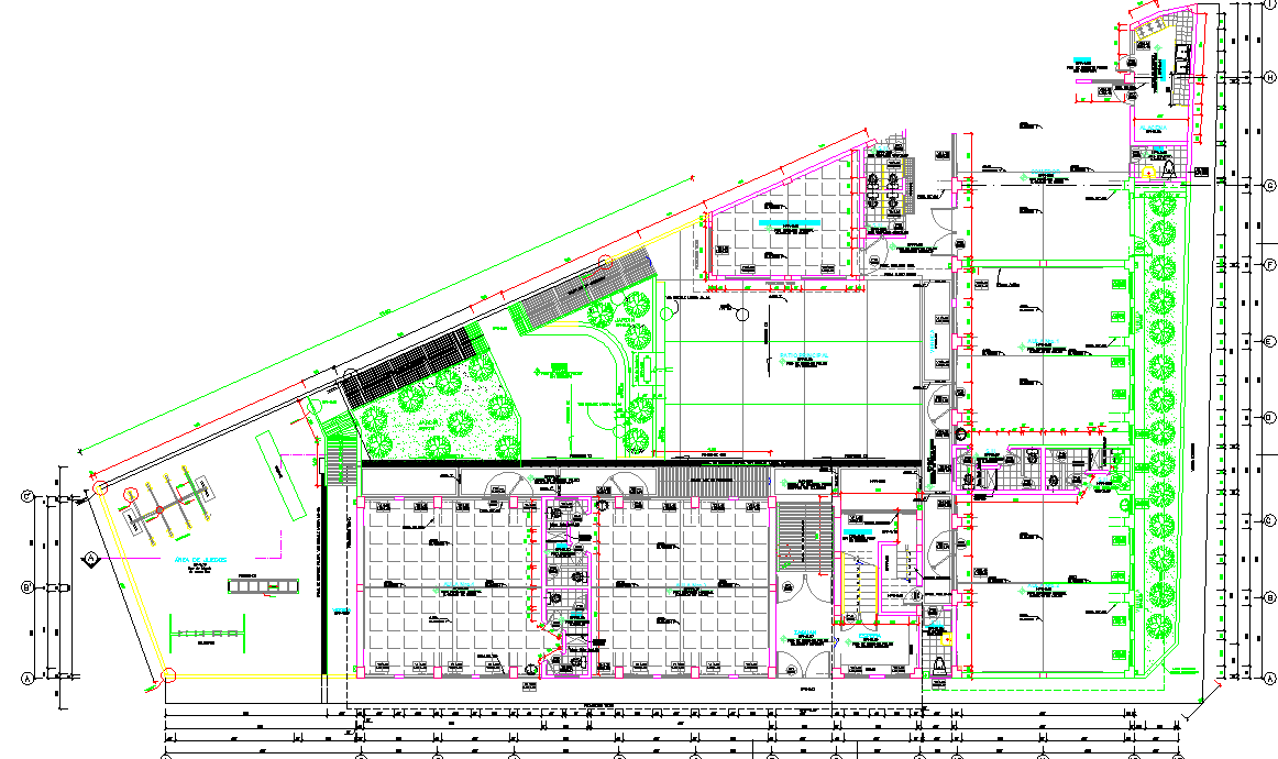 Big Layout plan of a college dwg file, greenery details. landscaping, flooring, tiling, architecture layout plan