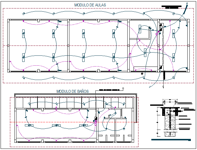 Electrical installation view of school classroom with detail view dwg file in plan with