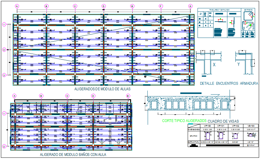 Structure view with beam and column view of collage dwg file in plan with view of column view with area distribution and detail view of column and beam with table view and necessary dimension.