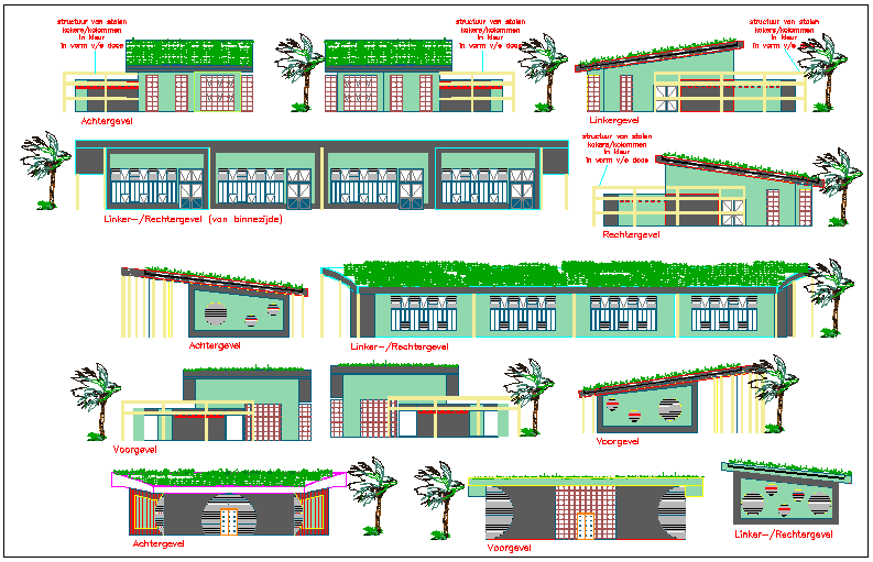 High school elevation and section view dwg file