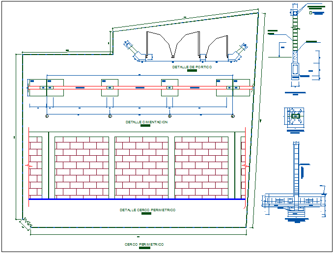 Wall and column foundation view of education center with construction detail dwg file