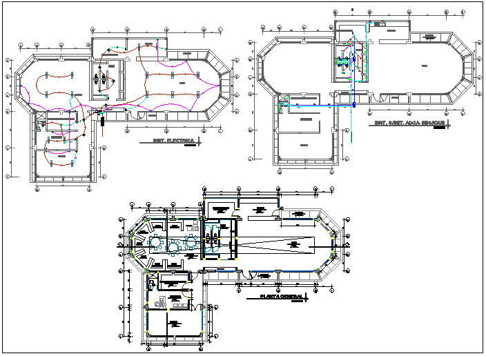 Architectural plan of collage with electrical and sanitary plan dwg file in architectural