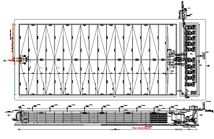 Plan and elevation detail dwg file, Plan and elevation detail with dimension detail, naming detail, reinforcement detail, hatching detail, etc.