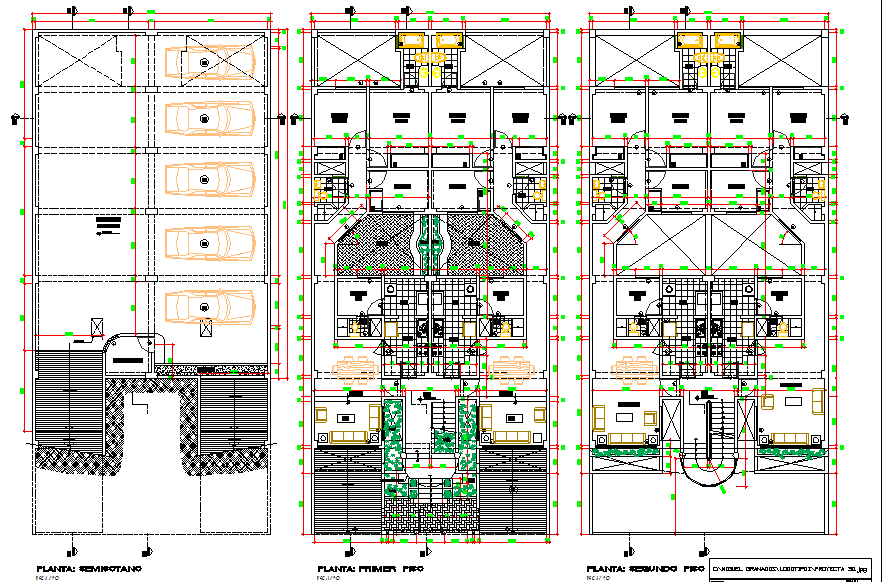Commercial building plan detail dwg file, Commercial building plan detail with naming detail, dimension detail, celler plan to ground floor plan, 1st floor plan detail, furniture detail with chair, table, parking detail, center line plan, etc.