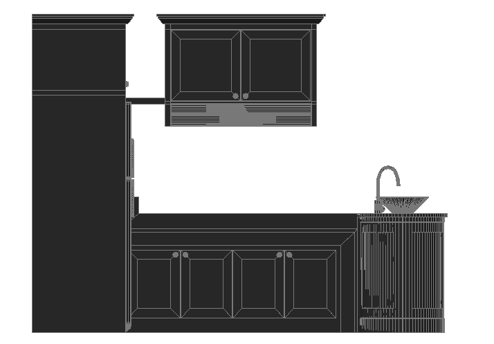 3D kitchen view detail dwg file, 3D kitchen view detail with cub board detail, sink detail, drover detail, freeze detail, etc.