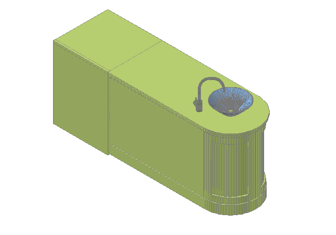 3D view rounded kitchen detail dwg file, 3D view rounded kitchen detail with sink detail, under drover detail, cub board detail, etc.