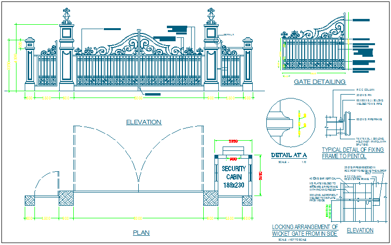 Gate elevation,plan and detail view dwg file in elevation with view of gate view with
