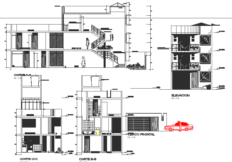 Plan, elevation and section detail dwg file, Plan, elevation and section detail with dimension detail, naming detail, section line detail, section detail, etc.
