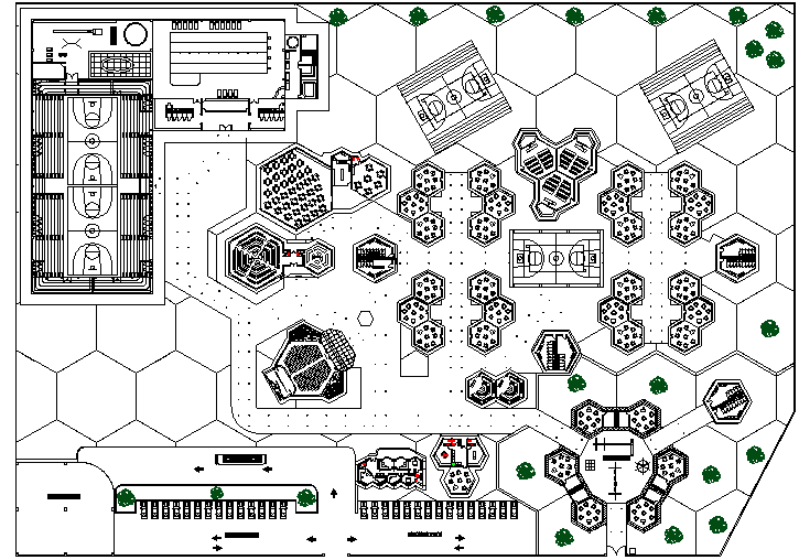 Layout plan detail dwg file, Layout plan detail with naming detail, furniture detail, gazebo detail, plot area detail, tree and plant detail, cub building detail, sitting detail table and chair, bench detail, stair detail, parking detail, etc.
