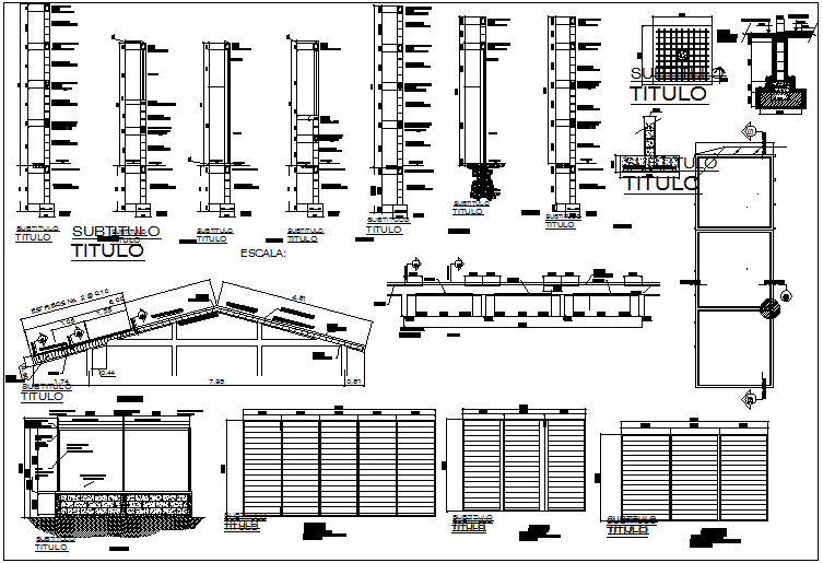 Construction foundation plan and section detail dwg file, Construction foundation plan and section detail with naming detail, dimension detail, roof plan and elevation detail with dimension detail and naming detail, beam and column detail, reinforcement detail, etc.