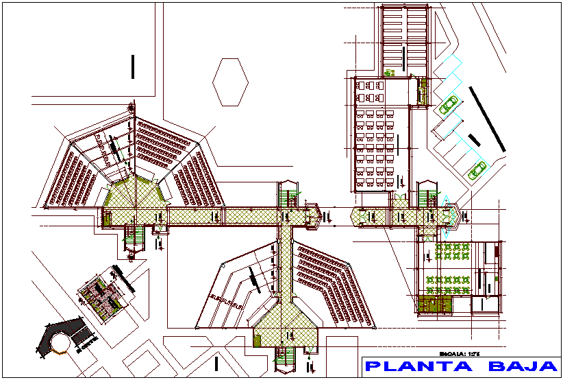 Ground floor plan of education center dwg file