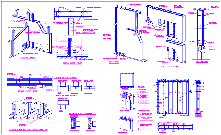 detail view with metal plate view with channel and Chanel joint view with isometric view and channel different joint and section view with necessary dimension.