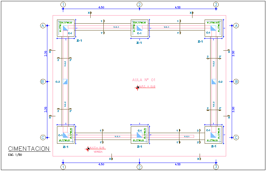 Foundation plan of school classroom dwg file in plan with area distribution view and