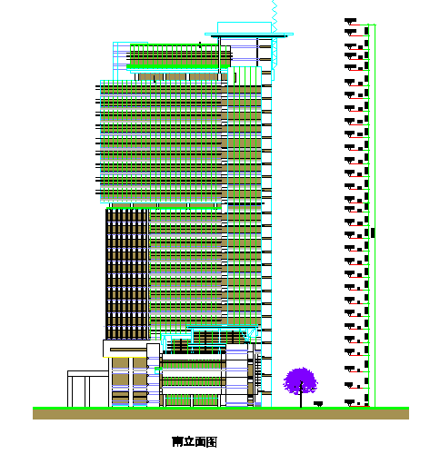 High - Rise Building Elevation . South Elevation detail, Provincial Power Company grid production scheduling floor derail.All dimension Detail in The Drawing.