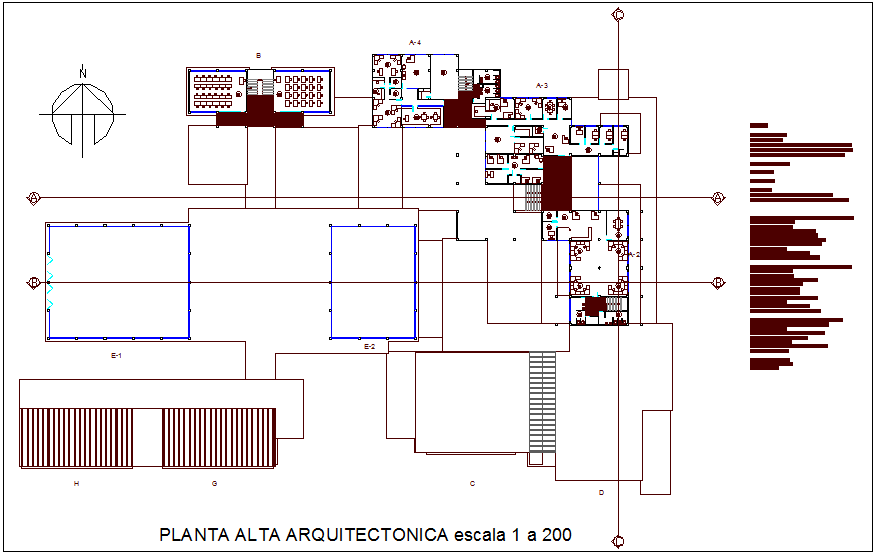 Plan of high level for collage dwg file in plan with area distribution and view of admin