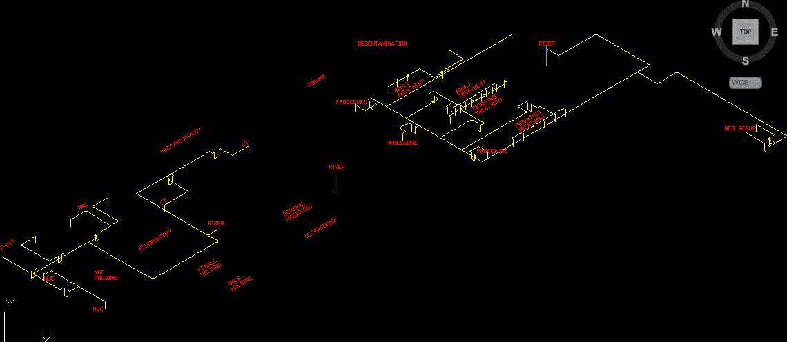 Explore the hospital N2O gas installation layout in a DWG drawing file featuring complete medical gas piping, outlet, and control valve design for hospital planning.