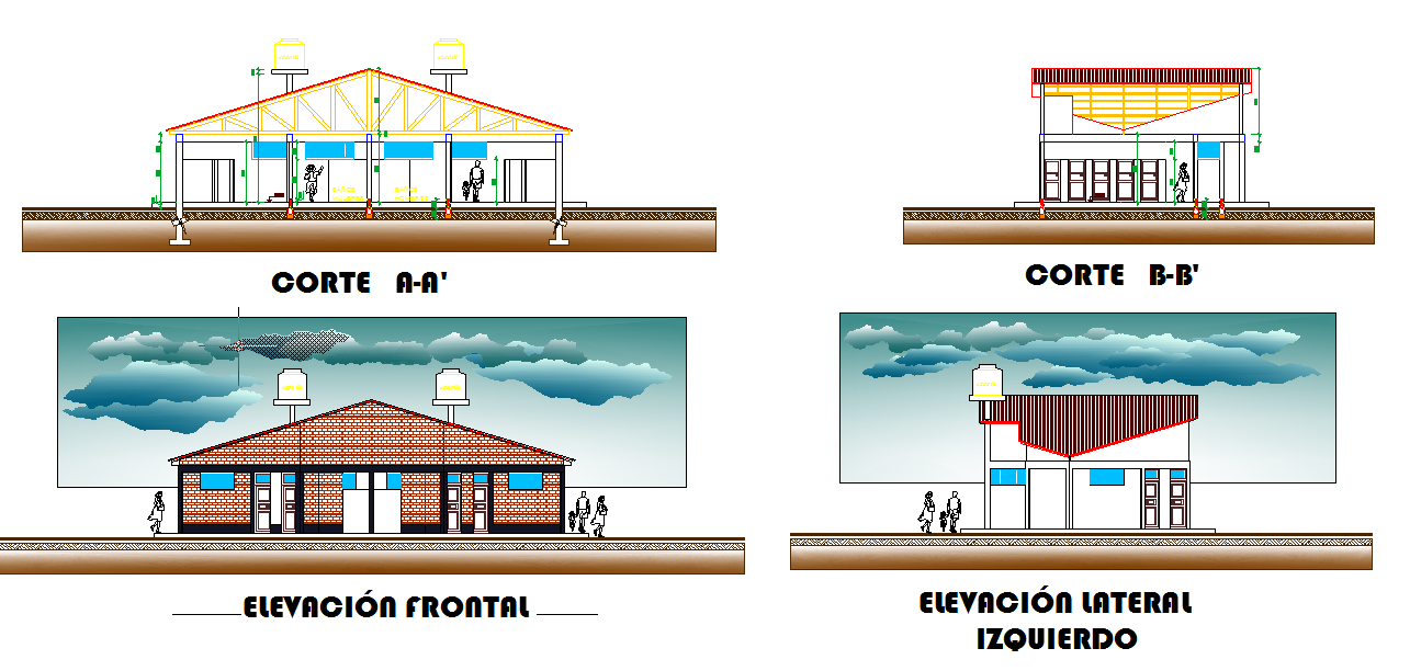 Education institution elevation layout dwg file, all side sectional detail and elevation in auto cad format