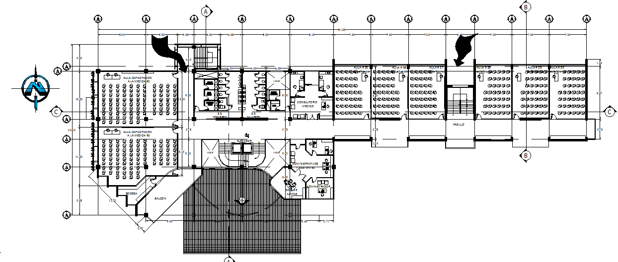 Layout plan of a school dwg file,furniture detailing , spacing detail,seating plan of a classroom, table and chairs ,staff room detail