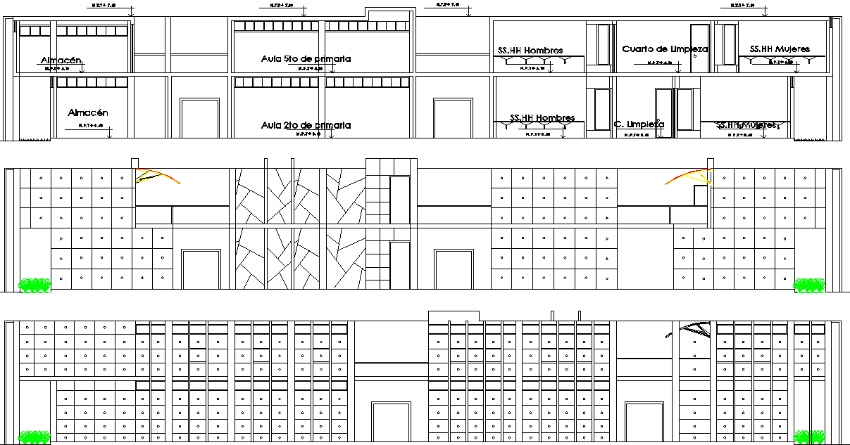 Large gate plan and elevation detail dwg file, Large gate plan and elevation detail with dimension detail, naming detail, both side tree detail, frebriction detail, door, window detail, etc.