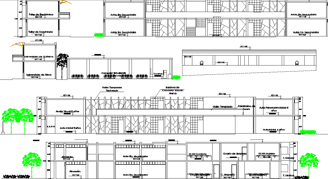 Large gate plan and elevation detail dwg file, Large gate plan and elevation detail with dimension detail, naming detail, both side tree detail, frebriction detail, door, window detail, etc.