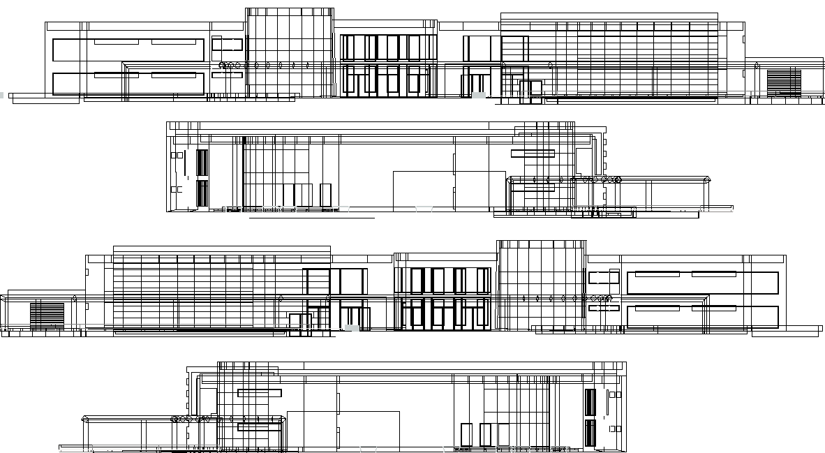 Library elevation detail dwg file, Library elevation detail with front elevation detail, rear elevation detail, left elevation detail, furniture detail door, window detail, both side tree and plant detail, greel detail, etc.