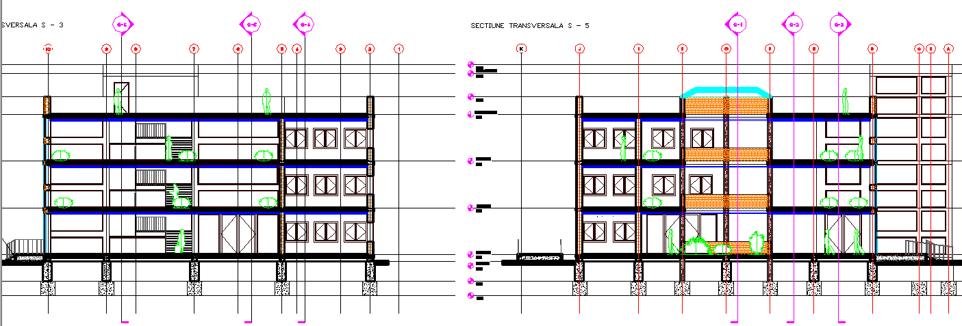 School elevation detail dwg file, School elevation detail with front elevation detail, back elevation detail, working plan detail, reeling detail, furniture detail door, window detail, both side tree and plant detail, greel detail, etc.