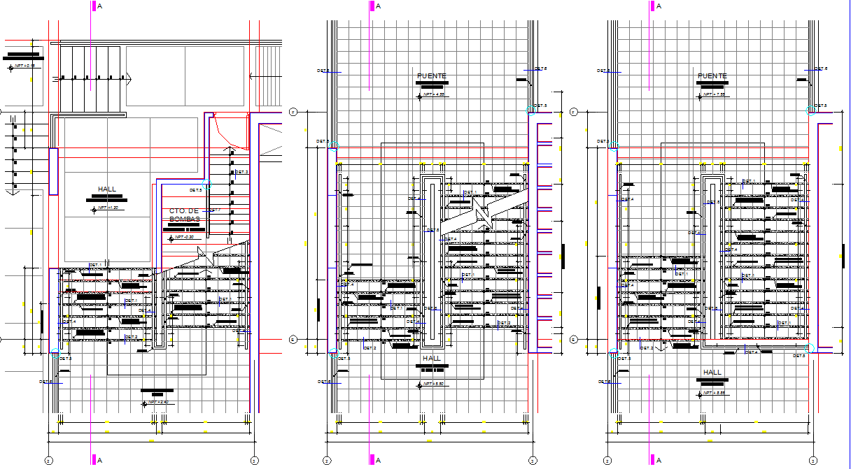 Stair plan and hall detail dwg file, Stair plan and hall detail with dimension detail, naming detail, flooring detail, center line plan detail with numbering detail, etc.