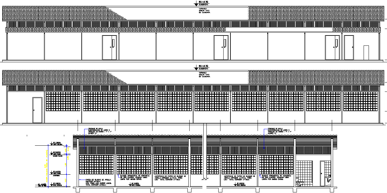 Section detail dwg file, Section detail with naming detail, both side tree detail, galss detail, main gate detail with section B-B’ detail with flag detail, section C-C’ with detail window and door detail, center line detail, etc.