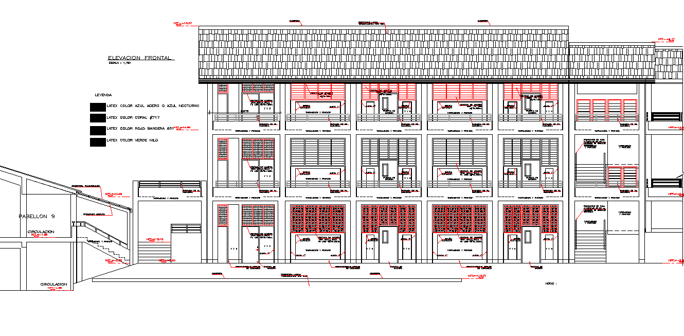 Sectional detail and elevation of a school dwg file,front sectional detail of college, door window detail