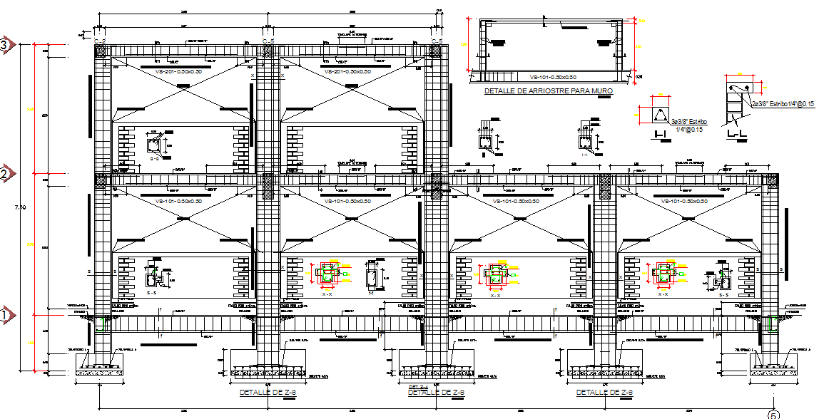 Footing Column and beam structural detail dwg file, Footing Column and beam structural detail with naming detail, dimension detail, reinforcement detail, brick detail, concrete mortar detail, center line detail, column section detail, beam section detail, etc.
