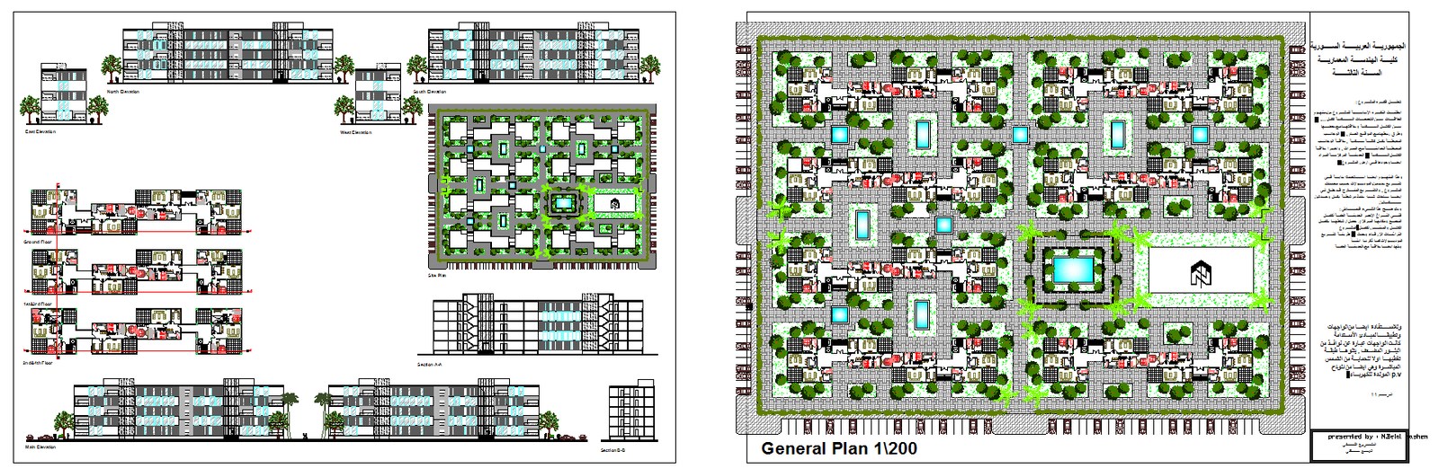 This Modern Apartment AutoCAD DWG file showcases a detailed architectural design for a residential building complex. The drawing includes a comprehensive general plan at a 1:200 scale, detailed floor layouts, and elevations from all sides, north, south, east, and west. Each apartment unit is thoughtfully planned with living areas, bedrooms, kitchens, bathrooms, and balcony spaces to optimize functionality and comfort.