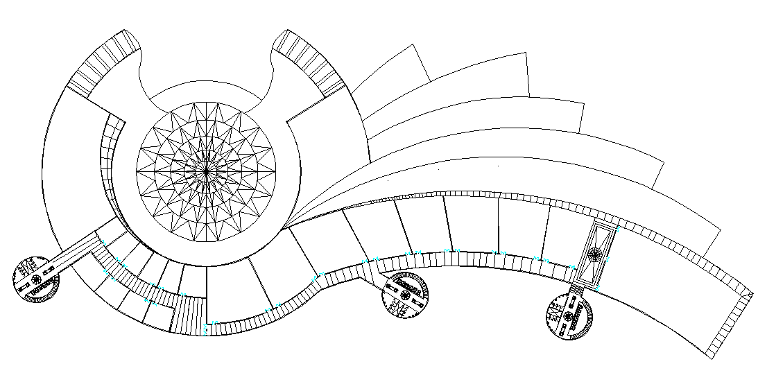 Round shape building detail dwg file, Round shape building detail with dimension detail, stair detail, fountain detail, etc.