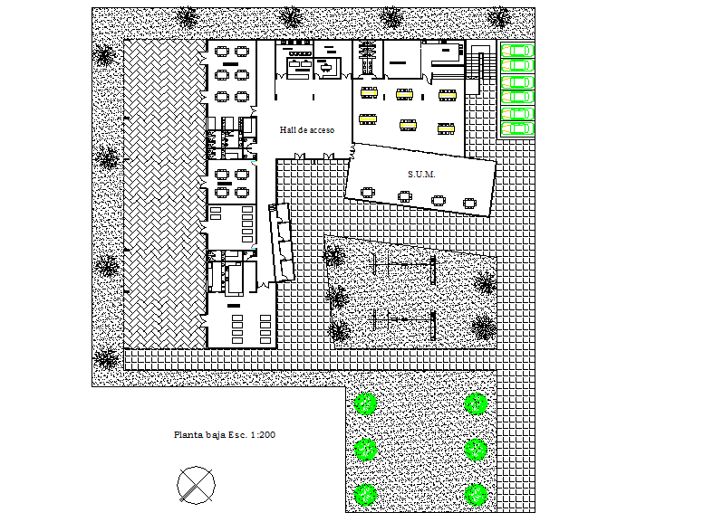 Pot area detail dwg file, Pot area detail with car parking detail, commercial plan detail, plant detail, dimension detail, naming detail, landscaping detail, etc.