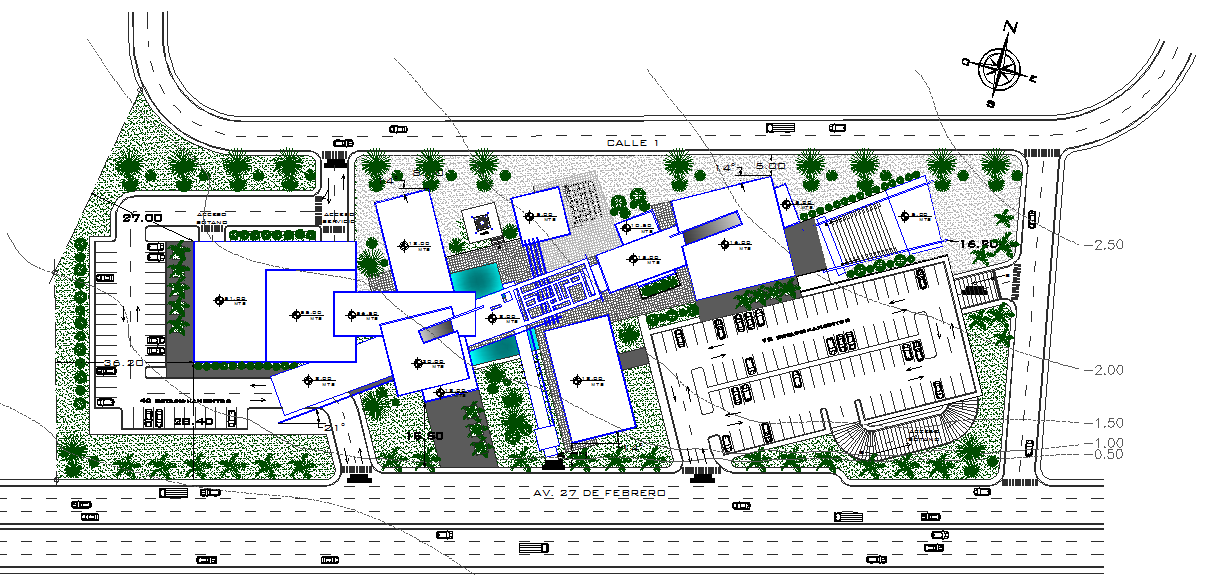 North direction Commercial plan detail dwg file, North direction commercial plan detail with naming detail, section line detail, section line detail, furniture detail with chair and table detail, car parking detail, tree and plant detail, etc.