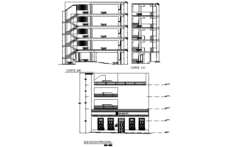 Elevation and section plan detail dwg file