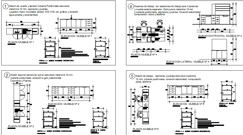 Furniture detail dwg file, Furniture detail with dimension detail, naming detail, cub board, table, drover detail, chair, plan and elevation, section detail, etc.