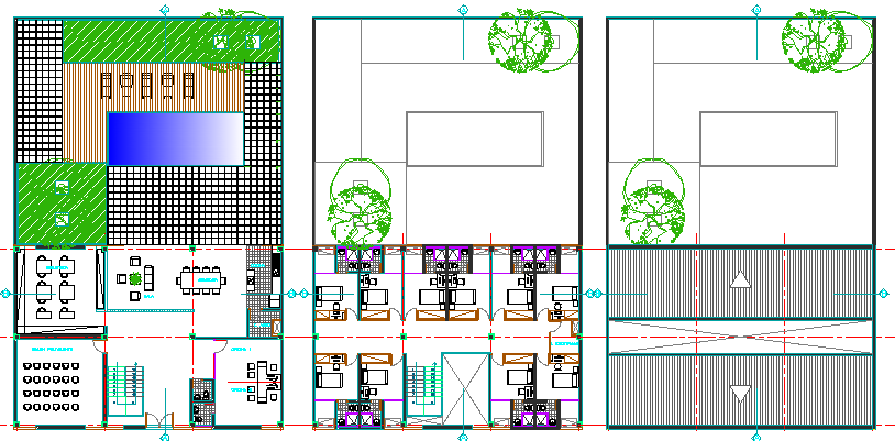Office building plan detail dwg file, Office building plan detail with tree detail, car parking detail, furniture detail with chair, table, stair detail, ramp detail, etc.