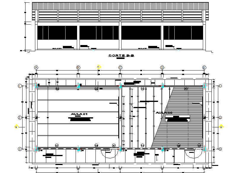 Plan and section detail dwg file, Plan and section detail with centre line plan detail, dimension detail, naming detail, reeling detail, etc.