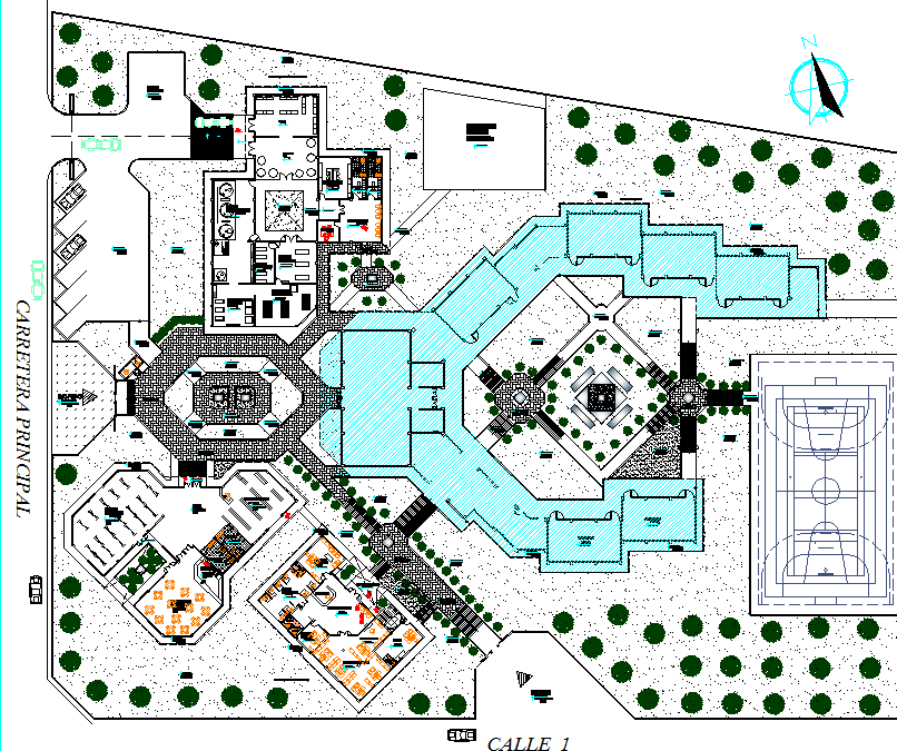 Layout detail dwg file, Layout detail with dimension detail, naming detail, landscaping detail, tree and plant detail, hatching detail, stair detail, etc.