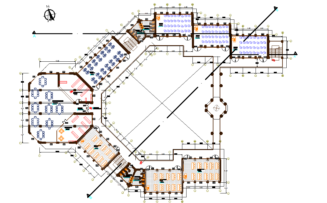 Office plan detail dwg file, Office plan detail with dimension detail, naming detail, landscaping detail, tree and plant detail, hatching detail, stair detail, etc.