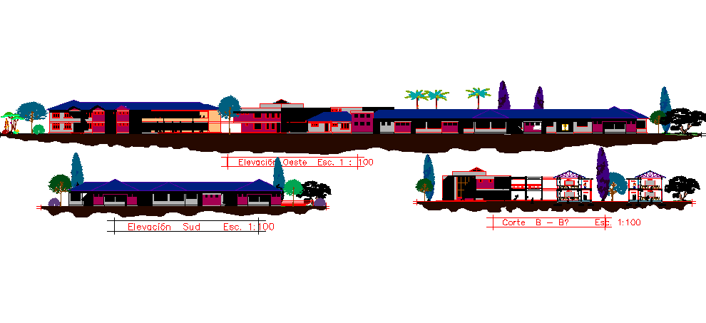 Elevation of a school dwg file