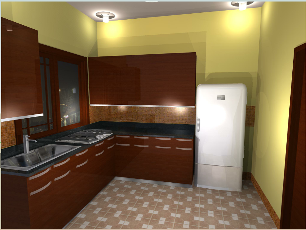 This 3D kitchen detail DWG file provides a complete interior modeling reference for modern kitchen design. The drawing includes a full cabinet layout with lower and upper storage units, featuring wood and glass door finishes. The sink zone, cooking area, refrigerator placement, and corner cabinets are arranged ergonomically to maximize efficiency. The model also highlights the countertop alignment, backsplash tiling, and overall color combination used in the kitchen composition. Lighting fixtures, ceiling elements, and interior wall treatments are clearly represented to support visual planning.