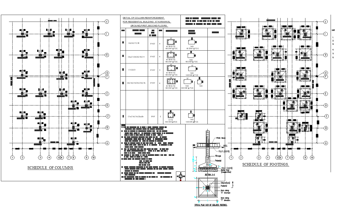 Foundation working plan detail dwg file, Foundation working plan detail with naming detail, dimension detail, foundation plan and elevation detail, column naming detail and dimension detail, reinforcement detail, etc.