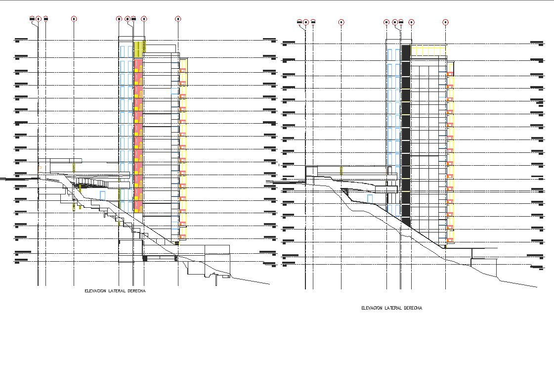 Section detail dwg file, Section detail with key plan detail, naming detail, both side tree detail, galss detail, main gate detail with section A-A’ detail with stair cutting detail, section B-B’ with detail window and door detail, etc.
