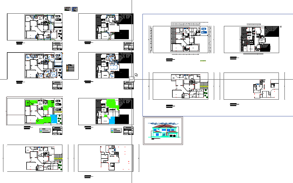 This modern bungalow design DWG file provides a complete architectural layout suitable for professionals working with AutoCAD, Revit, 3d Max, SketchUp, and other design platforms. The drawing includes accurately measured floor plans, room arrangements, parking layout, circulation planning, and internal zoning for functional residential design. Each level is drafted with clear dimensions, door and window placements, furniture arrangements, and structural references, helping architects and engineers understand the full spatial organization. Additional landscape detailing and outdoor elements provide better visualization of site integration.