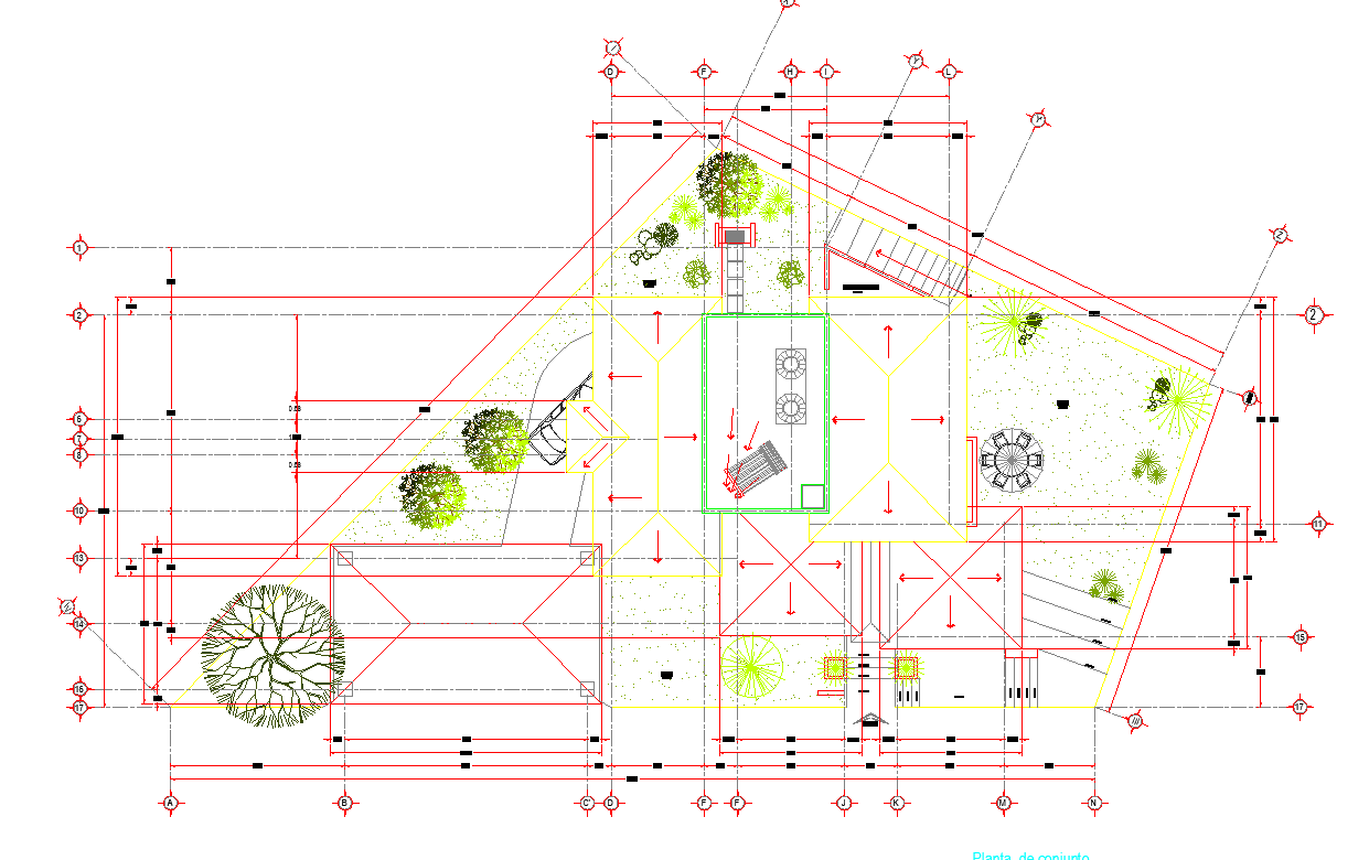 Center line plan detail dwg file, Center line plan detail detail with furniture plan detail with chair and table, car parking detail, stair detail, table, toilet detail, etc.