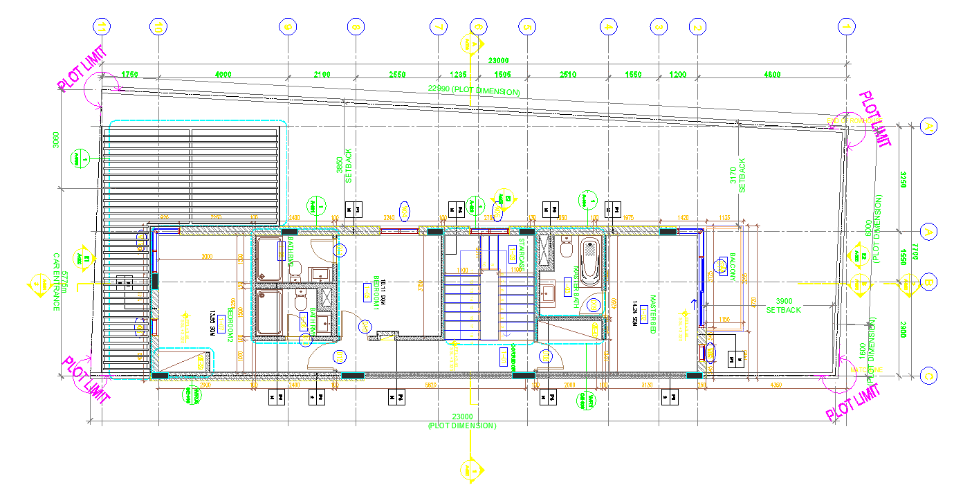 Residential building plan detail view dwg file, Residential building plan detail view and design plan layout detail view with specifications detail, dimensions detail, plot limit view etc