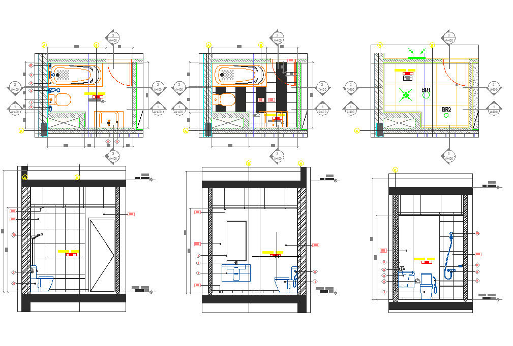 Bathroom toilet plan detail view dwg file, Bathroom toilet plan detail view and design plan layout detail view with dimensions detail, specifications derail, section view detail, elevation view detail etc