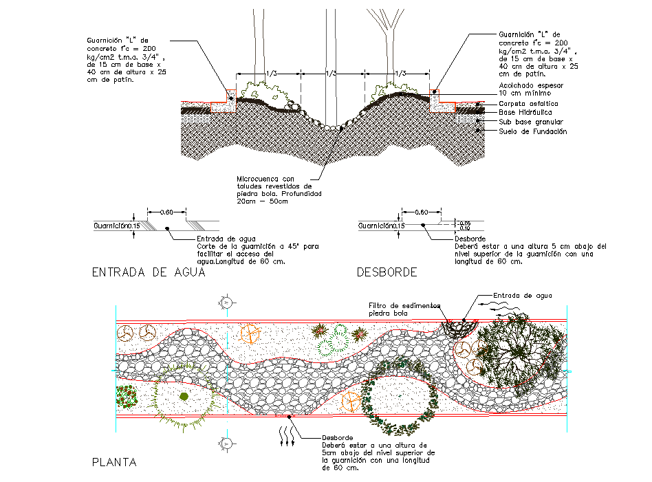 Base land section and plan view detail dwg file, Base land section and plan view detail with concrete specification detail, material detail, sub grade base detail etc