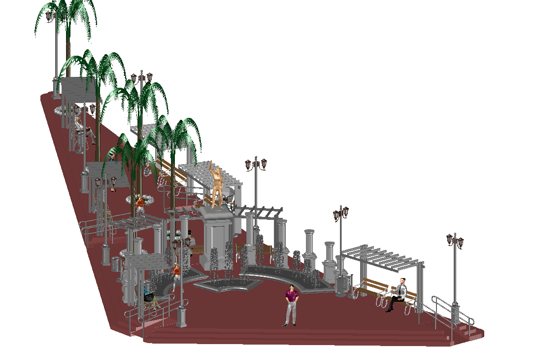 3d view of park and bench detail view dwg file, 3d view of park and bench detail view